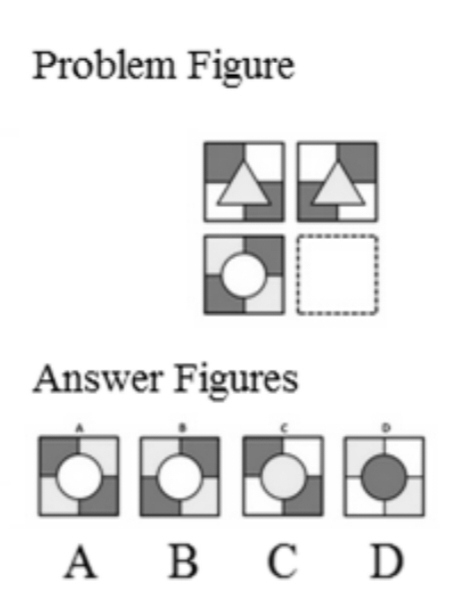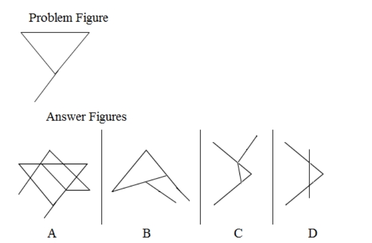 दिया गया समस्या चित्र (Problem Figure) नीचे के उत्तर चित्रों (Answer Figures) में से किसी एक में सन्निहित है। उस उत्तर चित्र (Answer Figure) की पहचान करें।