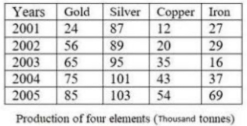 दी गई तालिका के अनुसार, 2001 से 2005 तक निम्न में से किसकी उत्पादन वृद्धि दर सर्वाधिक है?