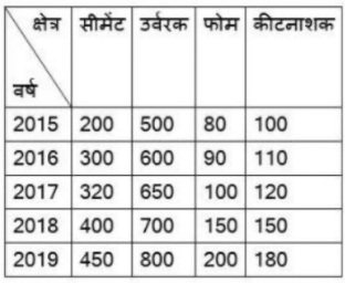 निम्न तालिका 5 वर्षों की अवधि हेतु किसी उद्योग के लिए विभिन्न क्षेत्रों से CFC उत्सर्जन (मिलियन मीट्रिक टन में) दर्शाती है। तालिका के आधार पर नीचे दिए गए प्रश्न का उत्तर दें।