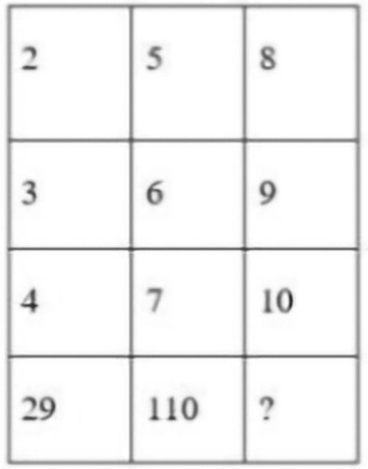 दिए गए ग्रिड का ध्यानपूर्वक अध्ययन करें और दिए गए विकल्पों में से उस संख्या का चयन करें जो इसमें प्रश्न चिह्न (?) को प्रतिस्थापित कर सकती है।
